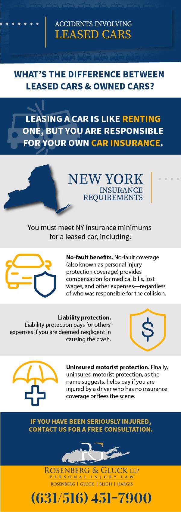 Most lease agreements in New York also require you to carry collision insurance (or comprehensive insurance) and liability insurance. That insurance coverage kicks in when you are in a collision, just as if you were the owner.